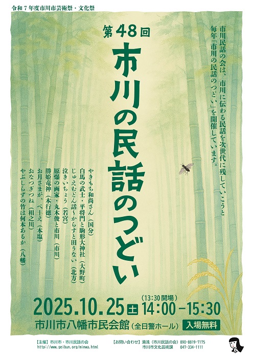 10/25(土)第48回市川の民話のつどいが本八幡・全日警ホールにて開催されますよ、入場無料