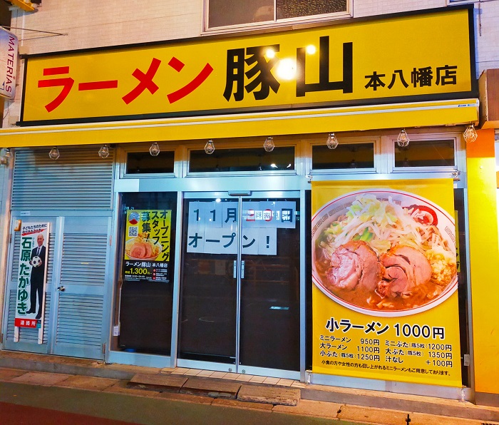 2025/11/19 ラーメン豚山本八幡店がオープン Tweet スポンサードリンク 読んでいただきありがとうございます。よろしければシェアしてください。 facebook Twitte Google+ はてな イチ子 「市川にゅ~す」運営者。2015年9月より地域ブログ運営。市川育ち。犬好き。 2025/11/19 関連記事 の最新記事 二郎系「ラーメン豚山 本八幡店」が11/29(土)オープン 千葉県市川市周辺で開催されるイベントまとめ【2025年11月】 オリンピック市川店が1/18(日)をもって閉店 ヒマラヤ千葉南八幡店が11/1オープン、市川インター北側交差点近く 真珠買取本舗が本八幡に9月オープン、千葉県初の真珠買取専門店 【市川市】12/1(月)~イチコ総額1億円還元キャンペーンがスタート、最大15%還元 【11/20(木)朝8時をもって終了】ICHICO(イチコ)30%還元市川でお米を安くキャンペーン、参加店舗一覧 【犯人逮捕】11/8(土)松戸市上本郷で殺人事件が発生 焼肉食べ放題じゅうじゅうカルビ南行徳店が改装工事のため臨時休業、11/22(土)リニューアルオープン マクドナルド南行徳駅前店が改装工事のため臨時休業、12/2(火)リニューアルオープン