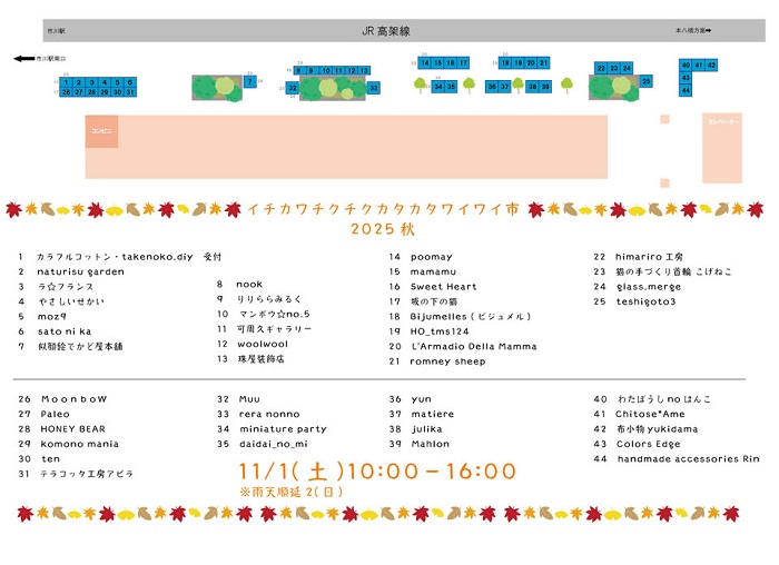 11/1(土)イチカワチクチクカタカタワイワイ市2025秋が市川駅南口にて開催されますよ。