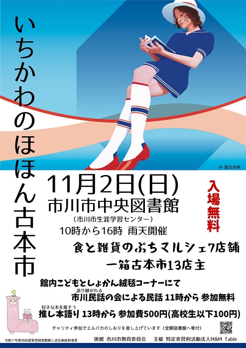 11/2(日)いちかわのほほん古本市が中央図書館にて開催、食と雑貨のぷちマルシェも