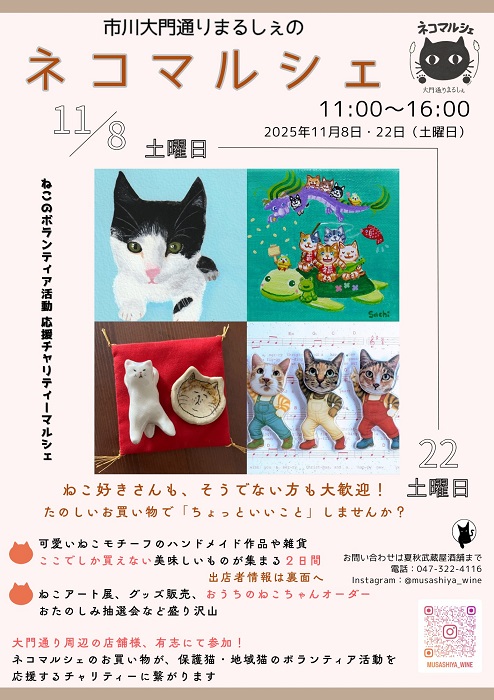 11/8(土)「大門通りまるしぇのネコマルシェ」が開催されますよ。
