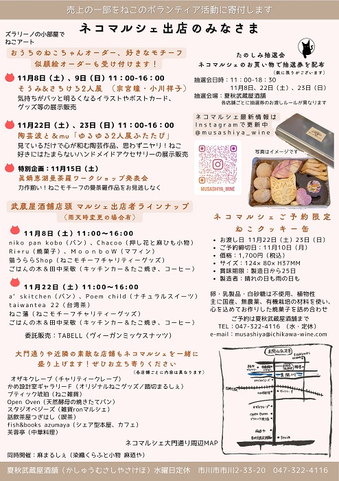 ねこにまつわるハンドメイド品、雑貨、美味しいものなどが盛りだくさんのマルシェです。