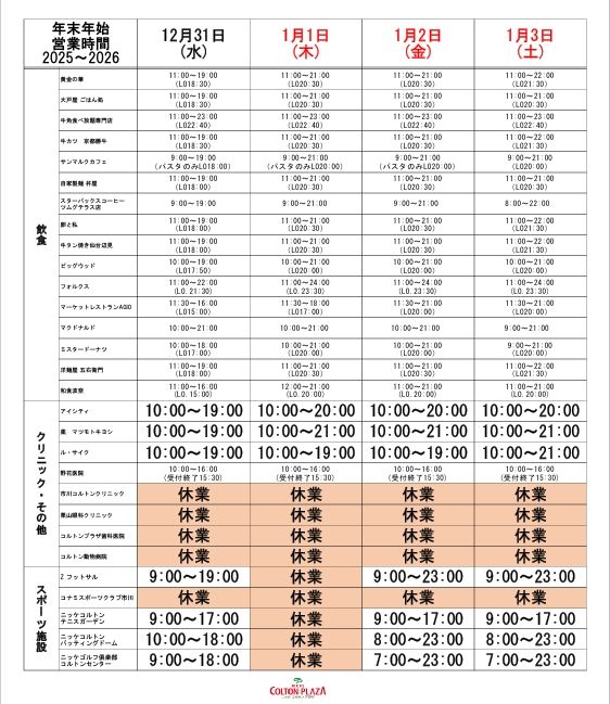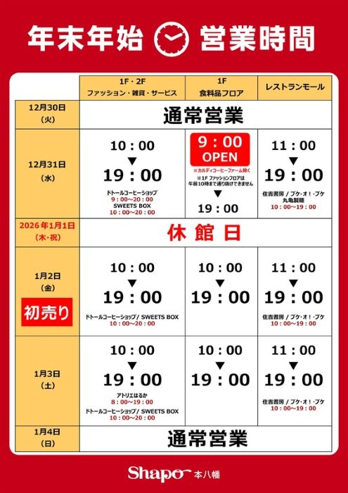 【年末年始営業時間】
