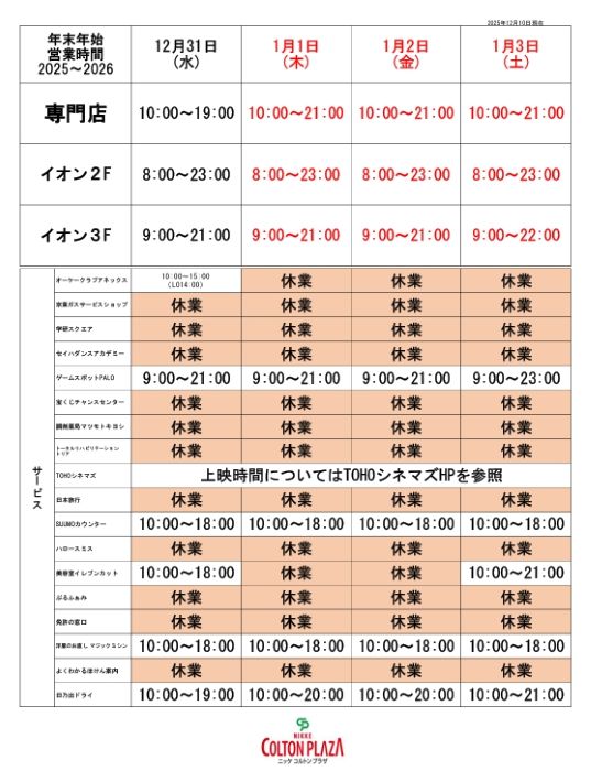 12月30日 10:00~20:00