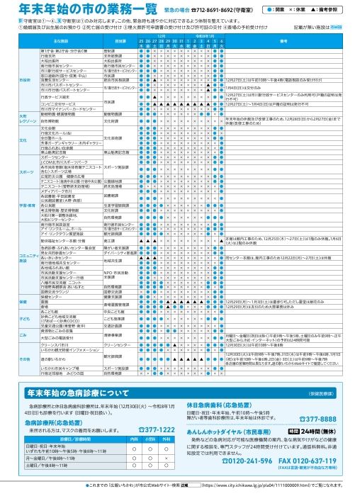 関連リンク:年末年始の市の業務一覧/市川市