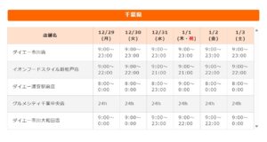 2025/12/25 スクリーンショット_25-12-2025_104353_www.daiei.co.jp スポンサードリンク 読んでいただきありがとうございます。よろしければシェアしてください。 facebook Twitte Google+ はてな イチ子 「市川にゅ~す」運営者。2015年9月より地域ブログ運営。市川育ち。犬好き。 2025/12/25 関連記事 の最新記事 1/23(金)お話と歌で繋ぐ喜劇オペラ『愛の妙薬』が市川市文化会館にて開催、チケット販売中 【浦安】ロイヤルパークホテル舞浜リゾート東京ベイが2/13(金)オープン、開業記念宿泊プランも予約可能 割烹・仕出し・定食「彩り葉」が鎌ヶ谷大仏に1/13(火)オープン、テイクアウトお弁当メニューも お酒の美術館 本八幡店が1/26(月)をもって閉店 曽谷のひとパン工房、1/18(日)が現店舗営業最終日、2026年3月ごろ東松戸駅前に移転オープン 市川のヒサトミが3月前後で終幕予定 市川真間駅近くの中華食堂ばくが1/31(土)をもって閉店 ミーナ津田沼が1/12(月)をもって一時閉館、2026年秋リニューアルオープン予定 リモア市川店がダイエー市川に11月オープン、骨盤・リンパ・整体・足裏・エステ 【2026年1月】テラスモール松戸が閉店ラッシュ、キタイチバの北野エースも