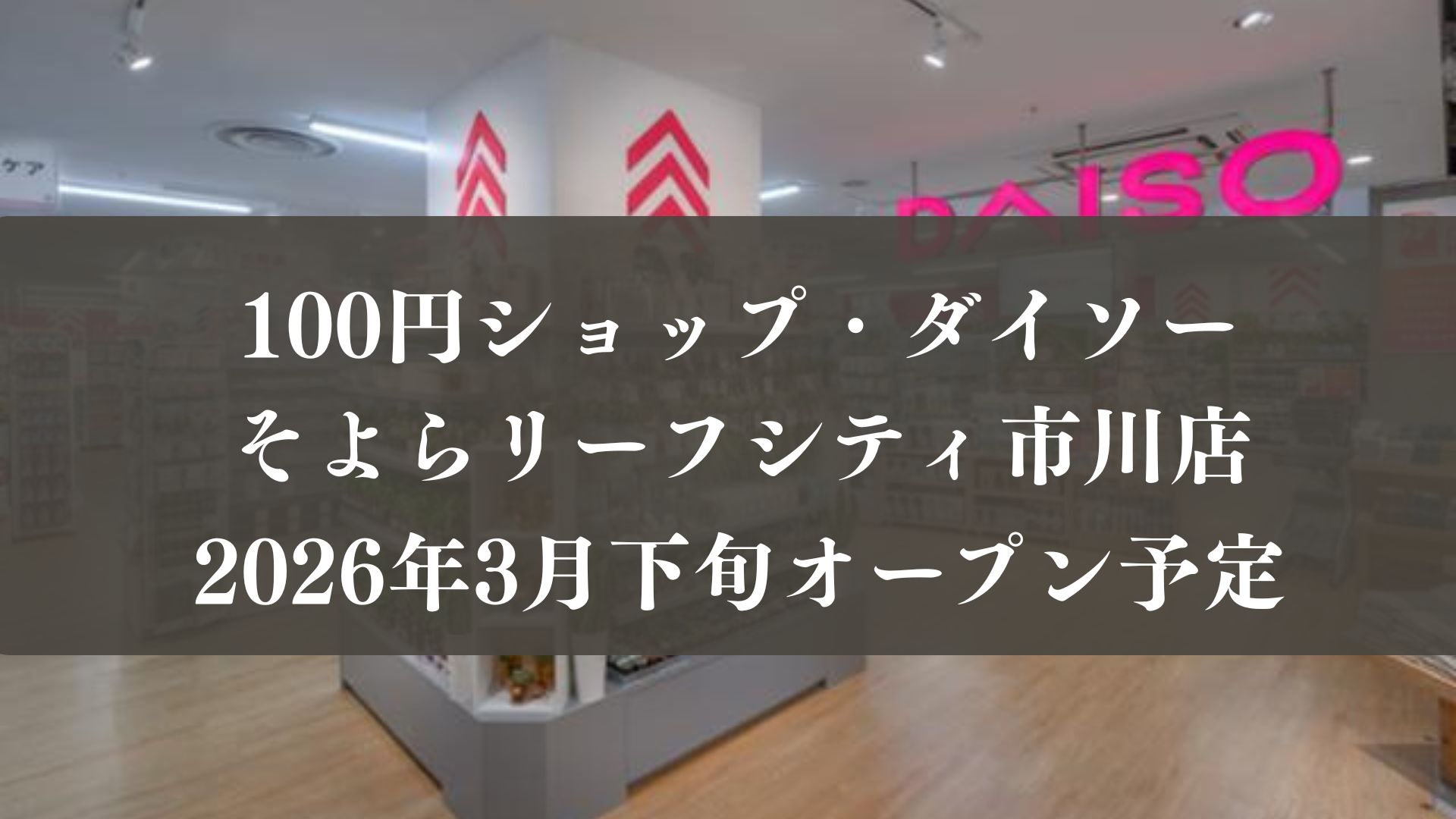 100円ショップ「ダイソーそよらリーフシティ市川店」が3月下旬オープン予定です。