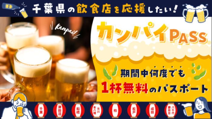 千葉県の飲食店を応援する「カンパイPASS」の制作・運営費を募るクラウドファンディングが2/27(金)まで行われています。