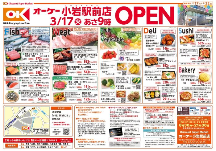 スーパー「オーケー小岩駅前店」が3/17(火)オープン、専用駐車場はなし、チラシについて