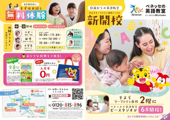 そよらリーフシティ市川にベネッセの英語教室「ビースタジオ(BE studio)」がオープンします。
