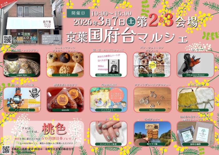 3/7(土)京葉不動産管理・アトリエ029にて「京葉国府台マルシェ」が開催されますよ、ドレスコードは桃色