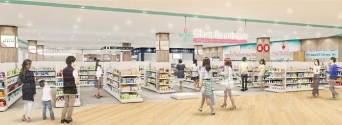 2階は、日用品・ヘルス&ビューティ売場に加えて、調剤薬局や専門店が並ぶフロア。