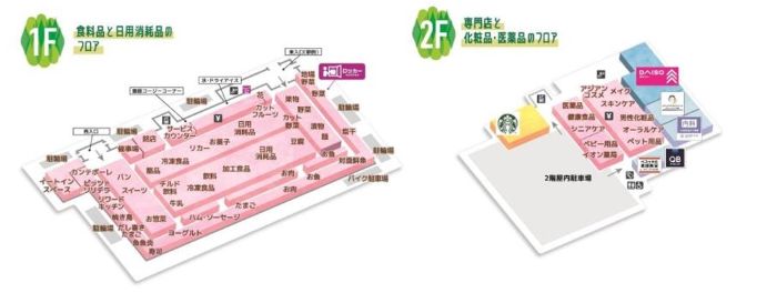 フロア構成|1階は食、2階は美容・健康・専門店の生活密着型レイアウト