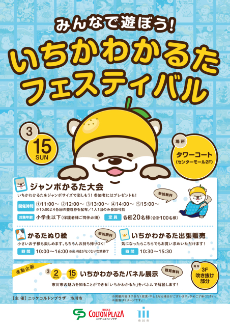 3/15(日)みんなで遊ぼう!いちかわかるたフェスティバルがコルトンプラザにて開催されますよ。