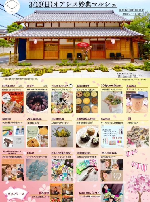 3/15(日)オアシス妙典マルシェが開催されますよ、入場無料、駐車場なし