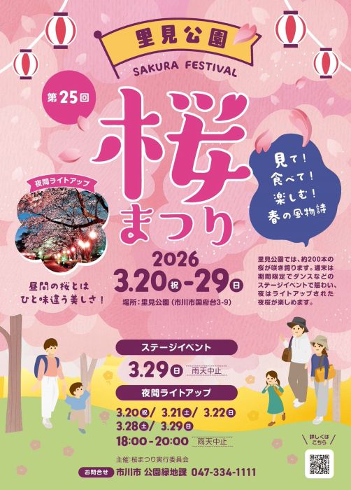 【市川市】第25回里見公園桜まつり(2026)が開催中、夜間ライトアップ・3/29(日)はステージイベントも