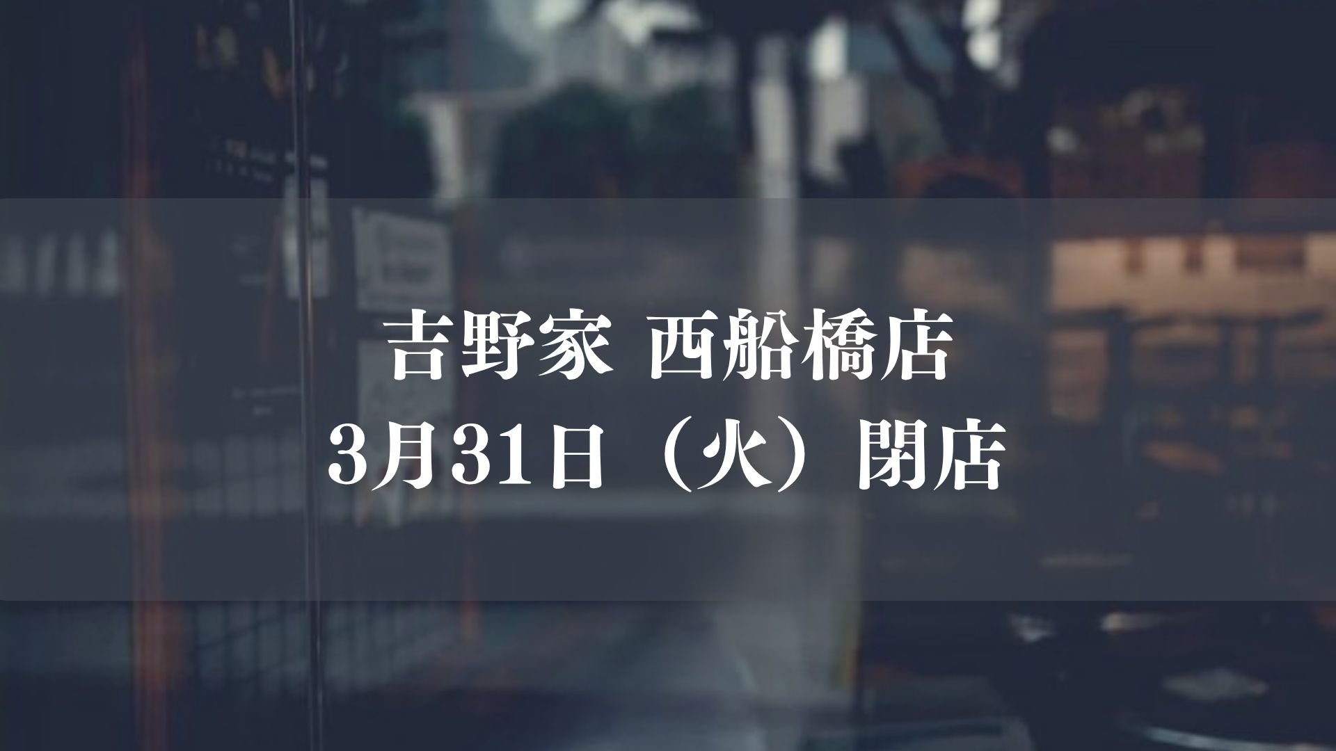牛丼チェーン「吉野家 西船橋店」が3/31(火)をもって閉店します。
