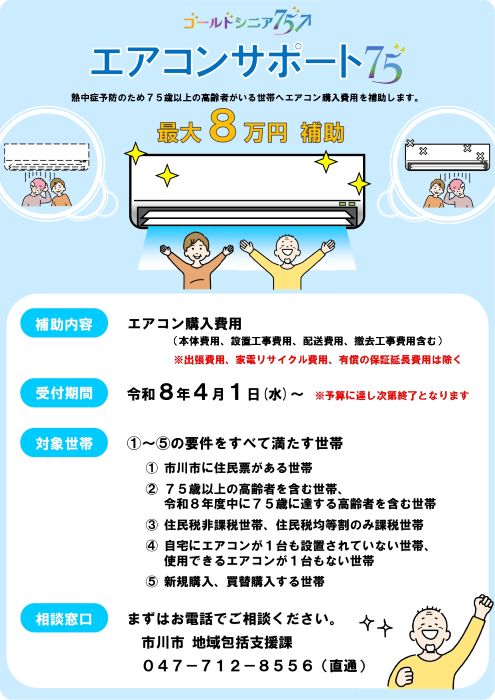 関連リンク:市川市ゴールドシニア事業(エアコンサポート75)/市川市