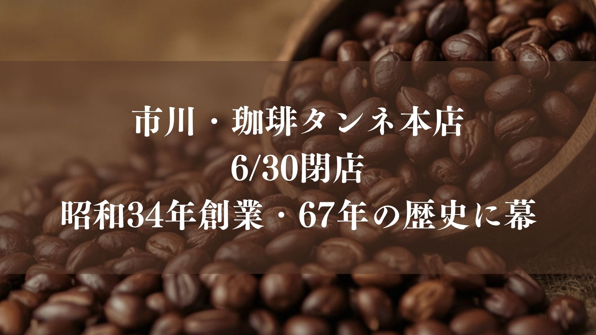 市川の珈琲タンネ本店が6/30をもって閉店、昭和34年創業・67年の歴史に幕