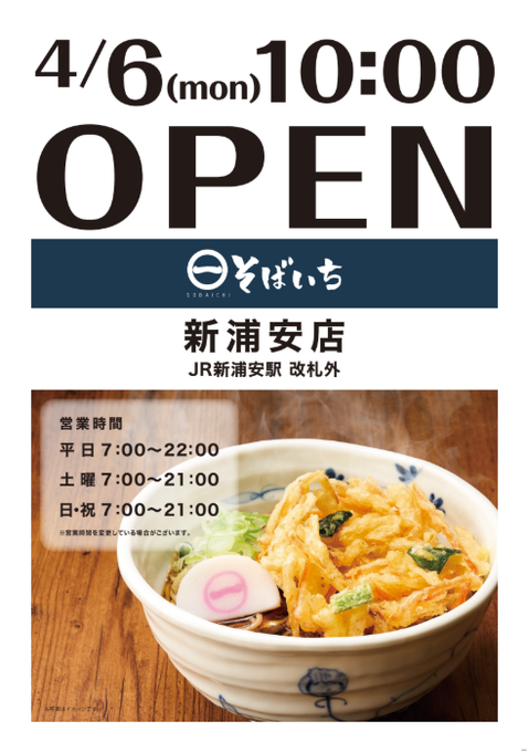 JR新浦安駅改札外に #そばいち 新浦安店がオープンします✨