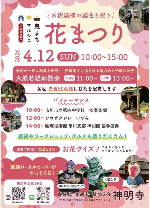 4/12(日)鬼まち花まつりが神明寺にて開催、ステージパフォーマンスやマルシェも