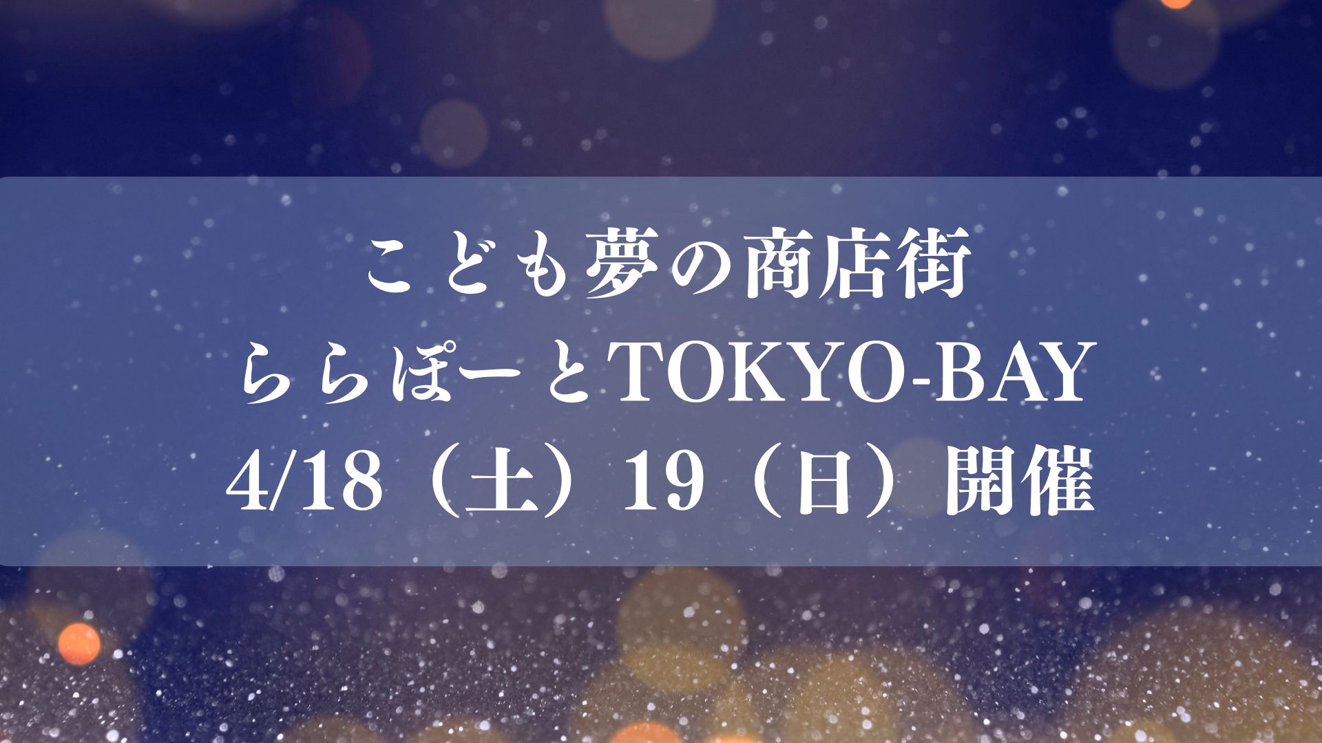 4/18(土)19(日)ららぽーとTOKYO-BAYにて「こども夢の商店街」がアンコール開催されますよ。