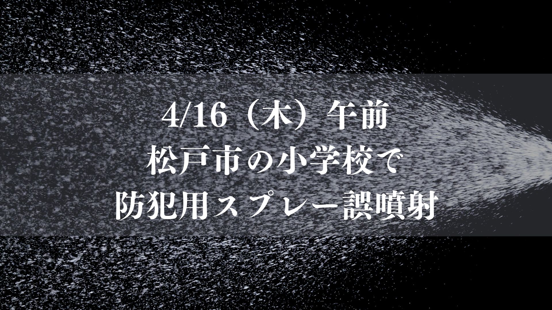 4/16(木)松戸市の上本郷小学校で防犯用スプレーを誤って噴射する事案が発生しました。
