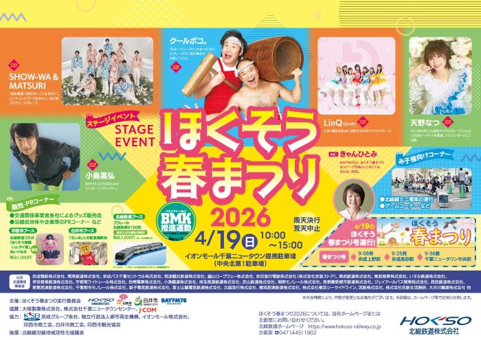 - 主催:「ほくそう春まつり2026」実行委員会 (北総鉄道株式会社、印西市、白井市、株式会社ベイエフエム)