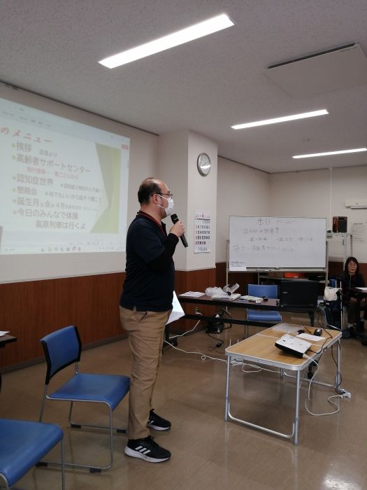 認知症に関して理解を深め共生社会を目指し認知症の世界を語ろうと題し参加者との懇談の中で何かが見い出せればとボランティア員お待ちしておりますので気楽に「きらく」へお立ち寄りください。